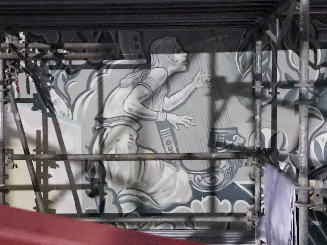 In the winter of 2018–2019, I spent a few months In Ontario, California, just outside Los Angeles. I was there working with other artists and craftsmen from EverGreene Architectural Arts on the re-creation of a large mural on the ceiling of the Chaffey High School Gardiner W. Spring auditorium.