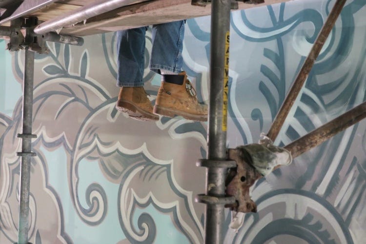 There were about a dozen craftsmen and artists working on the mural re-creation. About half the crew is locally from California, and the rest from around the country.